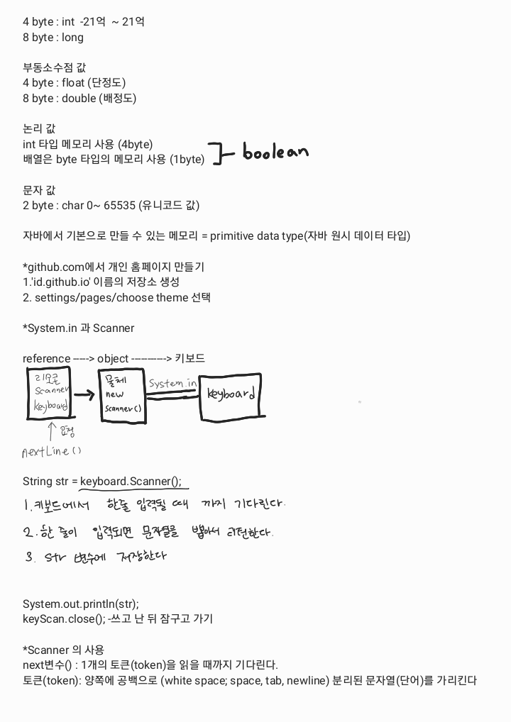 변수 선언과 초기화, 데이터타입, System.in과 스캐너, Next메소드 본문