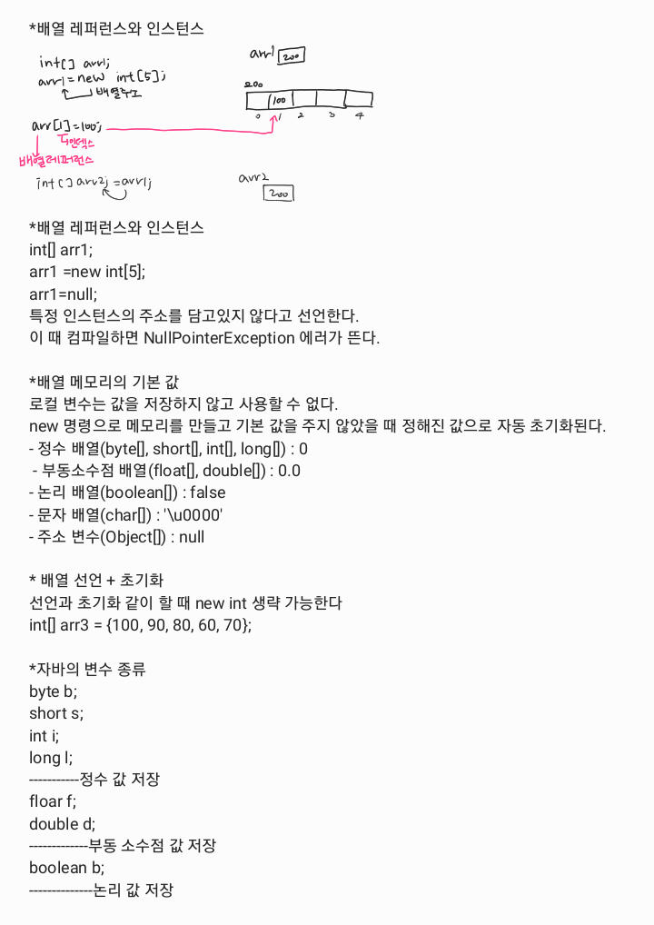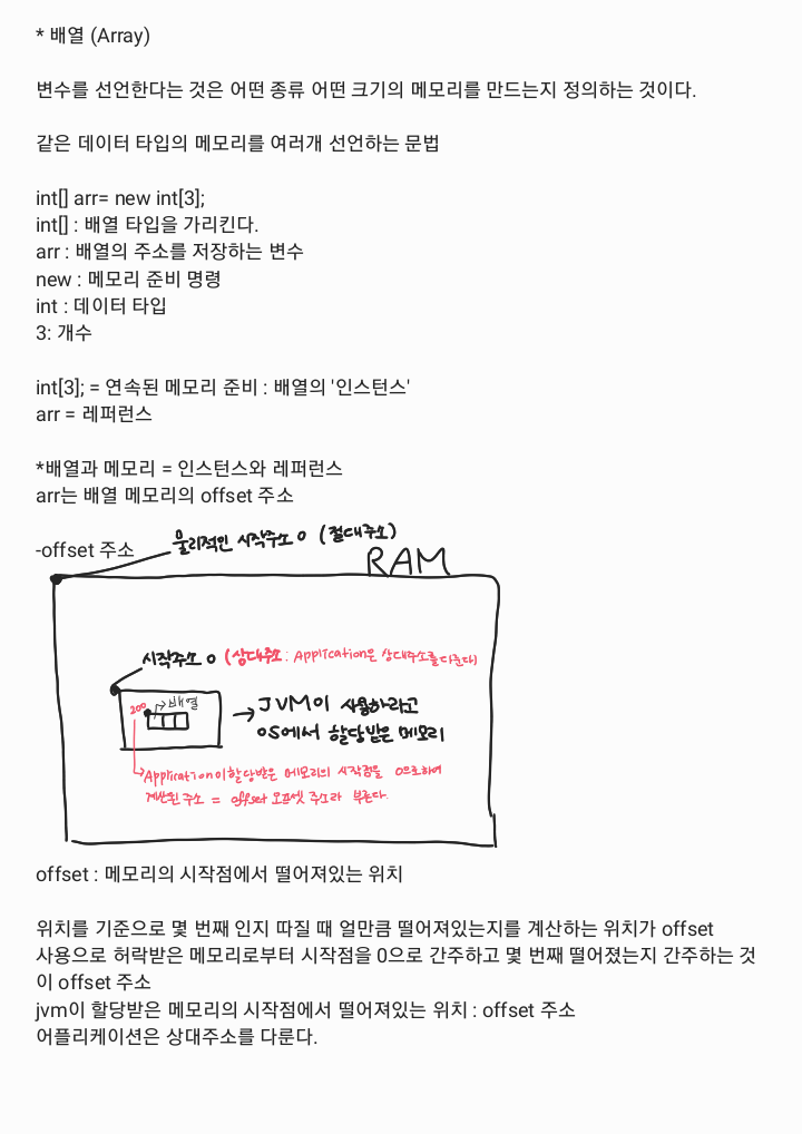배열, offset 주소, 레퍼런스와 인스턴스, 자바의 변수 종류, 파라미터 본문