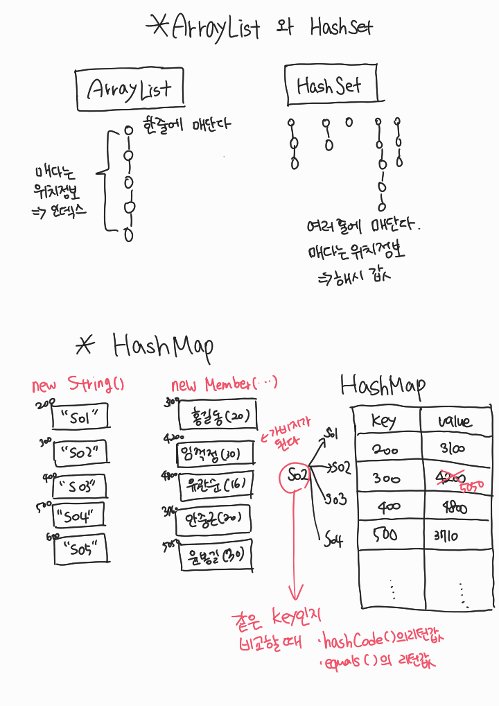 HashSet (= 해시값을 가지고 방 배정을 한다)은 내부적으로 값을 저장할 때 위치 정보를 순서대로 저장하지 않는다.