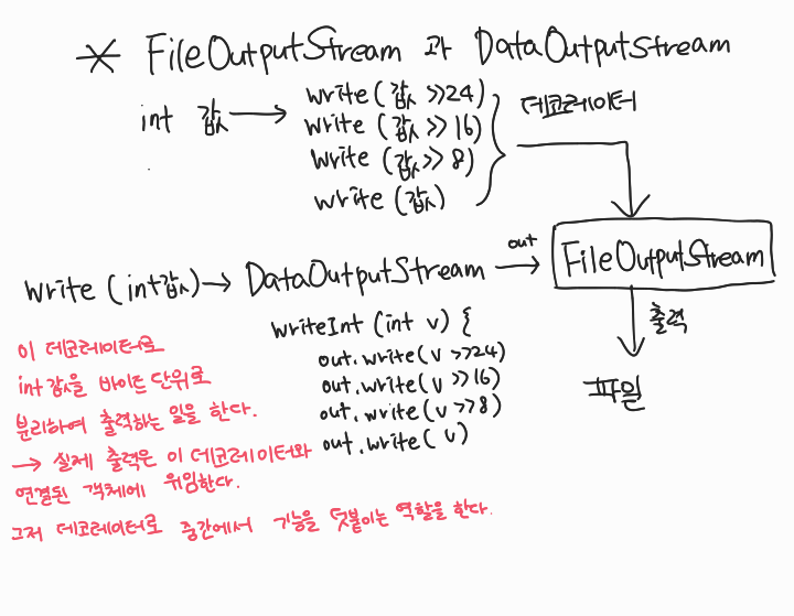 FileOutputStream = 파일로 데이터를 출력하는 역할