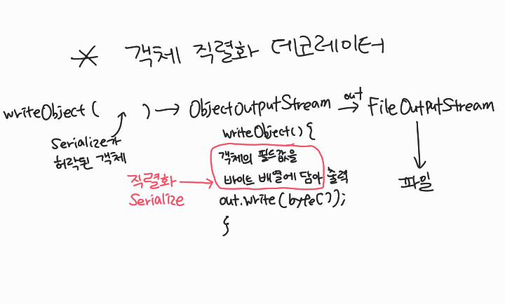 serialize 가 허락된 객체가 들어가면 해당 메서드 안에서 객체의 필드값을 바이트 배열에 담아서 출력