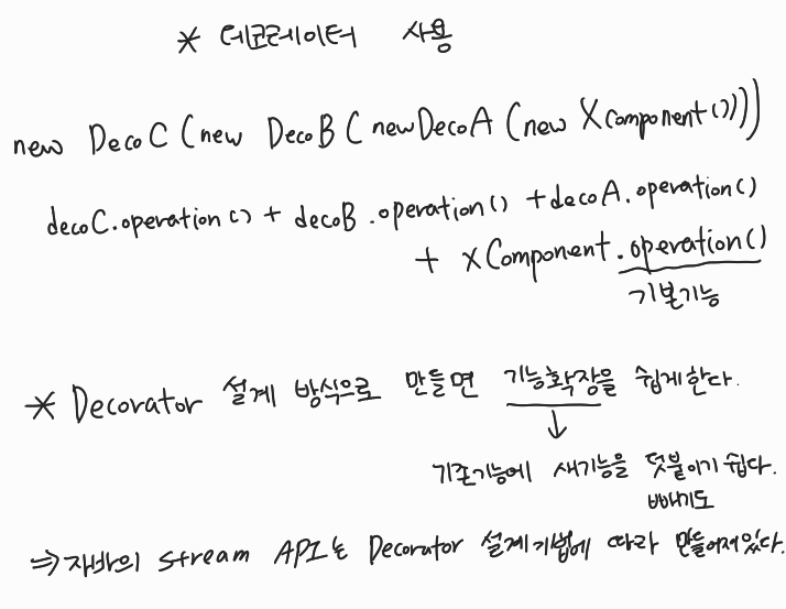 자바의 Stream API 는 decorate 패턴으로 만들어져있다.