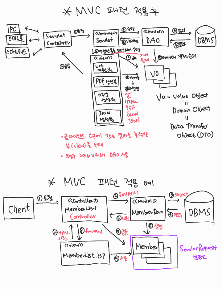 servlet - 요청 받아서 dao 실행(제어-controller), 결과HTML 생성(화면-view)