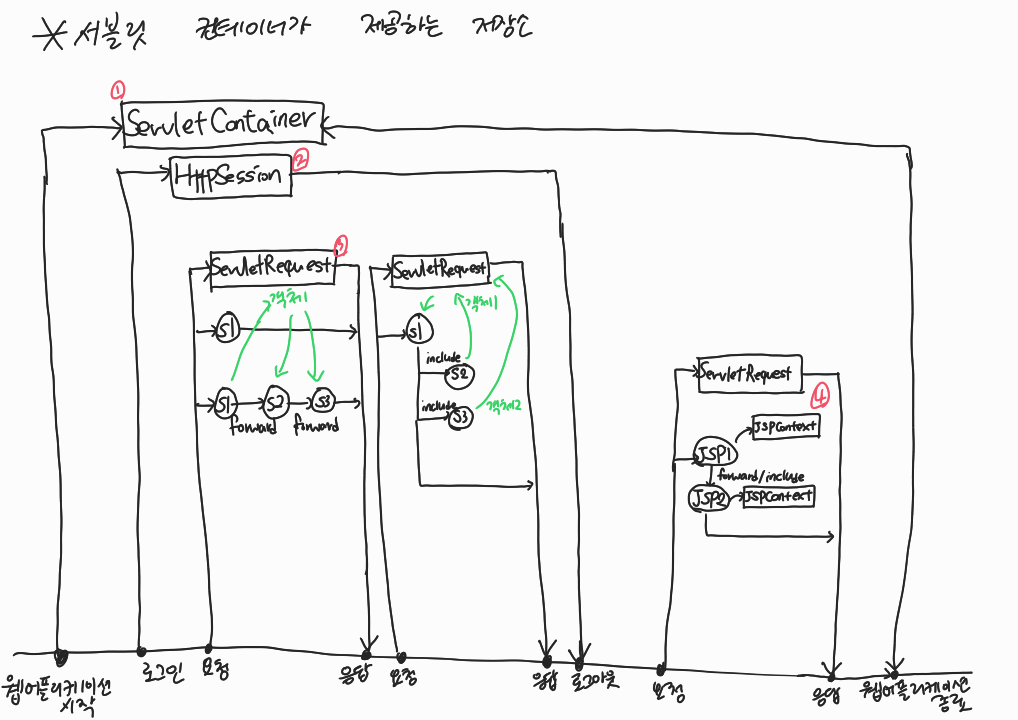 요청처리에 참가하는 서블릿끼리 데이터 공유할 때 사용하는 것이 ServletRequest 보관소